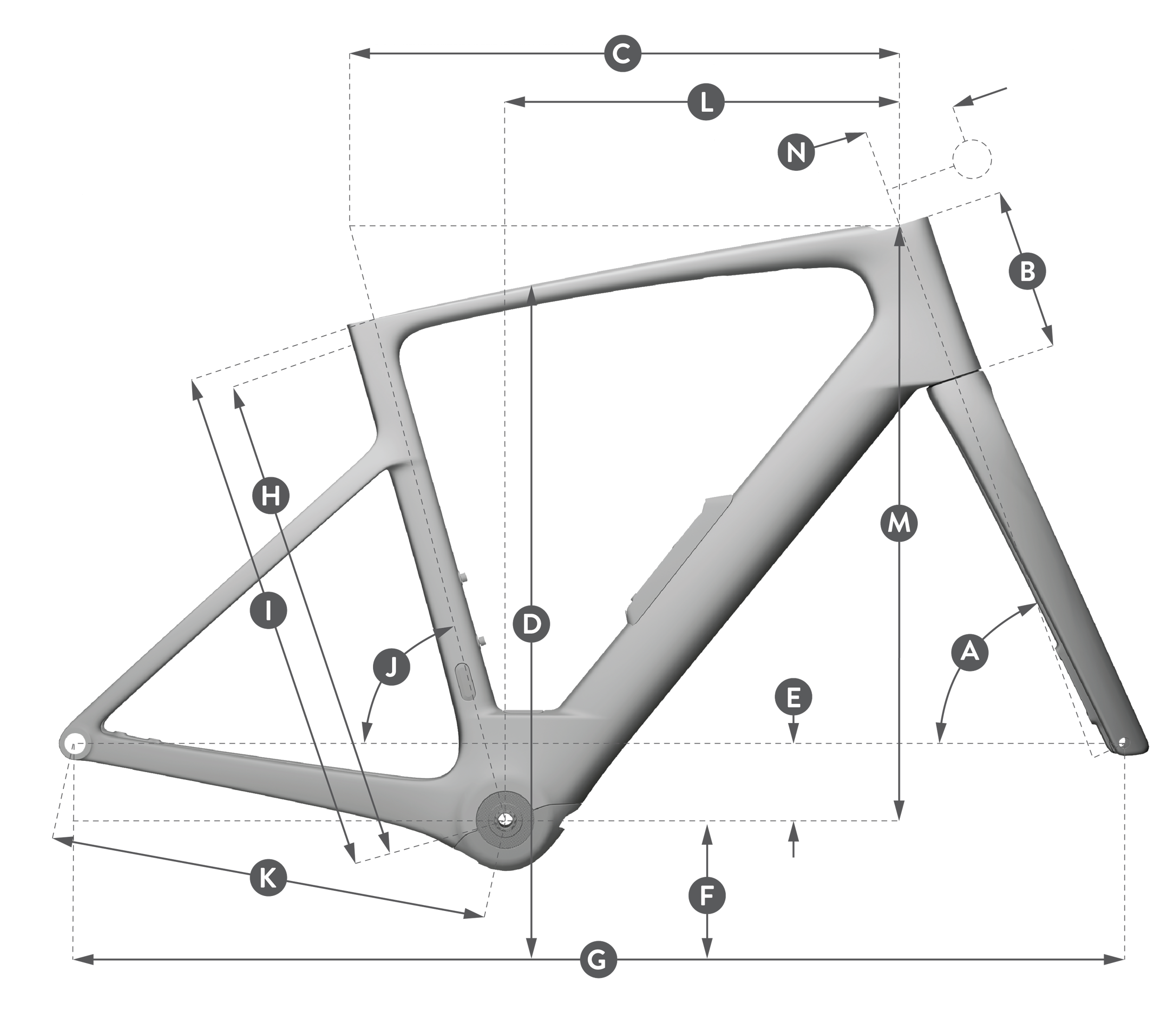 I BB center to top of seattube / dist. boitier - sommet tube de selle