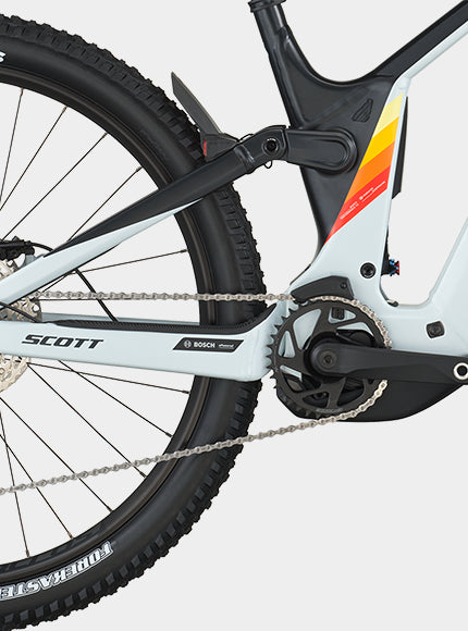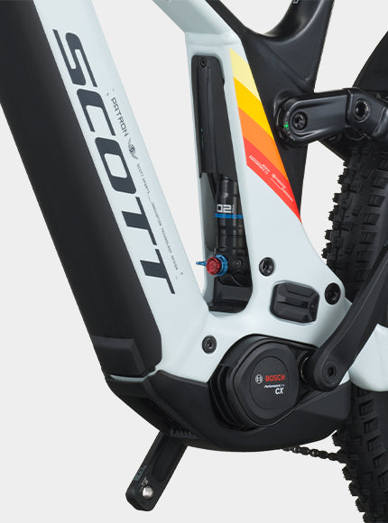 Cadre en aluminium, Technologie de suspension intégrée cinématique Virtual 4 Link, Angle de direction réglable Système d’intégration des câbles Syncros Bosch Smart System, Interface UDH, 12 x 148 mm avec ligne de chaîne de 55 mm, Compatible Bosch PowerMore